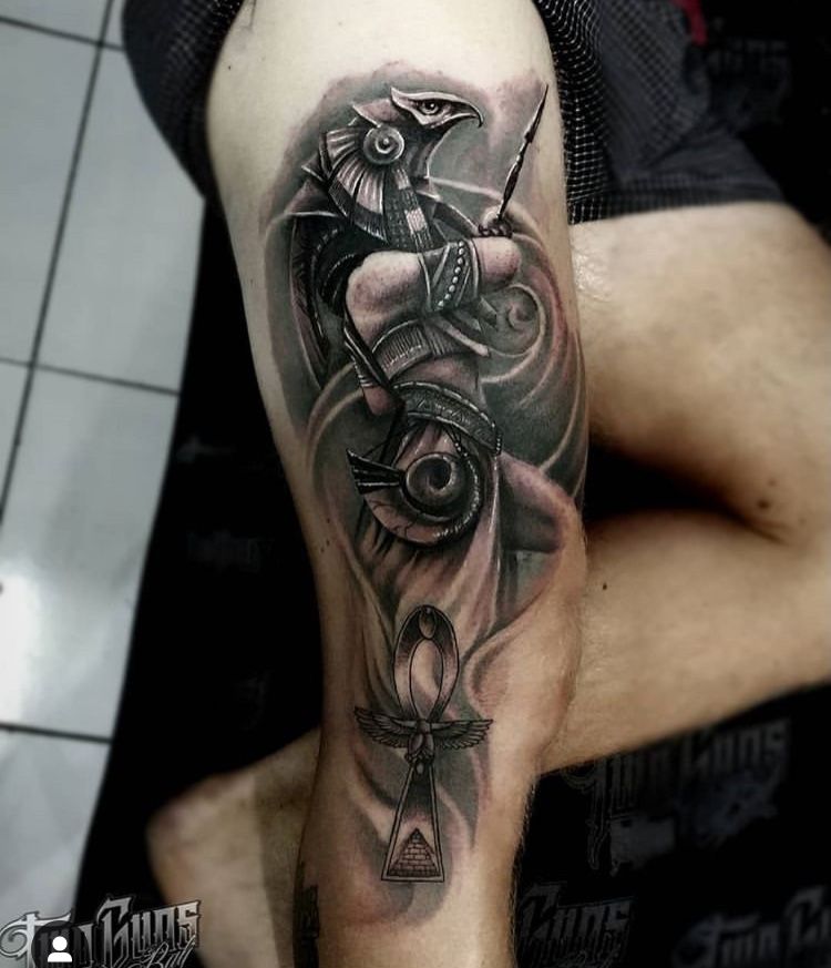 При этом если на татуировке дополнительно изображена корона, которая по форме напоминает солнечный диск, то такое тату гласит о том, что его носитель обладает мудростью, величием и духовными знаниями.