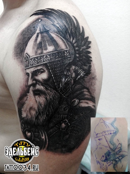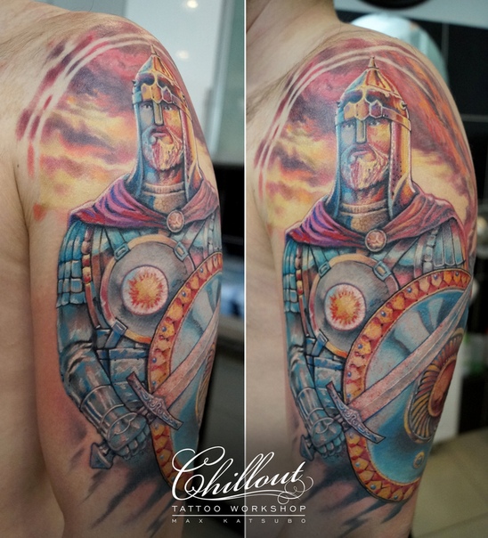 Тату на плече богатыря, фото от:Богатырь — это древние герои славянского фольклора. Такое изображение нельзя использовать просто для украшения тела. Данный вид рисунка индивидуален и несет в себе конкретно определенный смысл. Изначально, перед тем как начать наносить такую татуировку на свое тело обязательно необходимо точно определиться с ее значением. Сегодня рисунок на теле имеет современную интерпретацию.