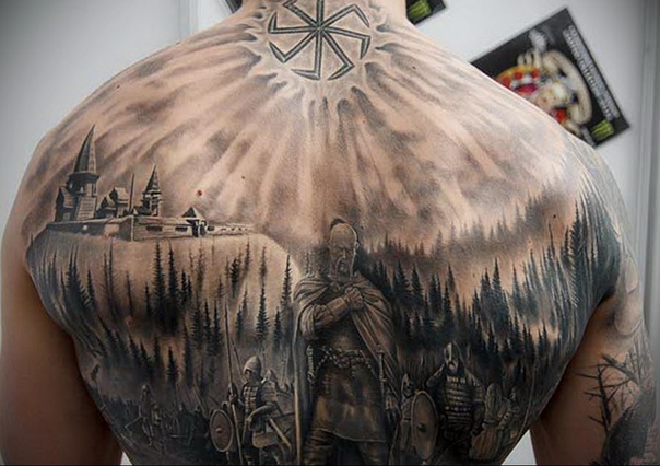 Выбор такой татуировки для сильного пола стал популярен и распространен в тату живописи. Следствие популярности стало благодаря большому вниманию к истории своей страны и жизнедеятельности предков.