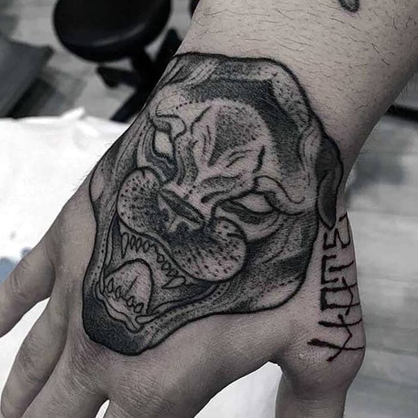 - если это умеренный рисунок с пантерой без дополнений и дорисовок, можно делать наколку на бедрах, лопатках, плечах, ладонях и кистях рук;