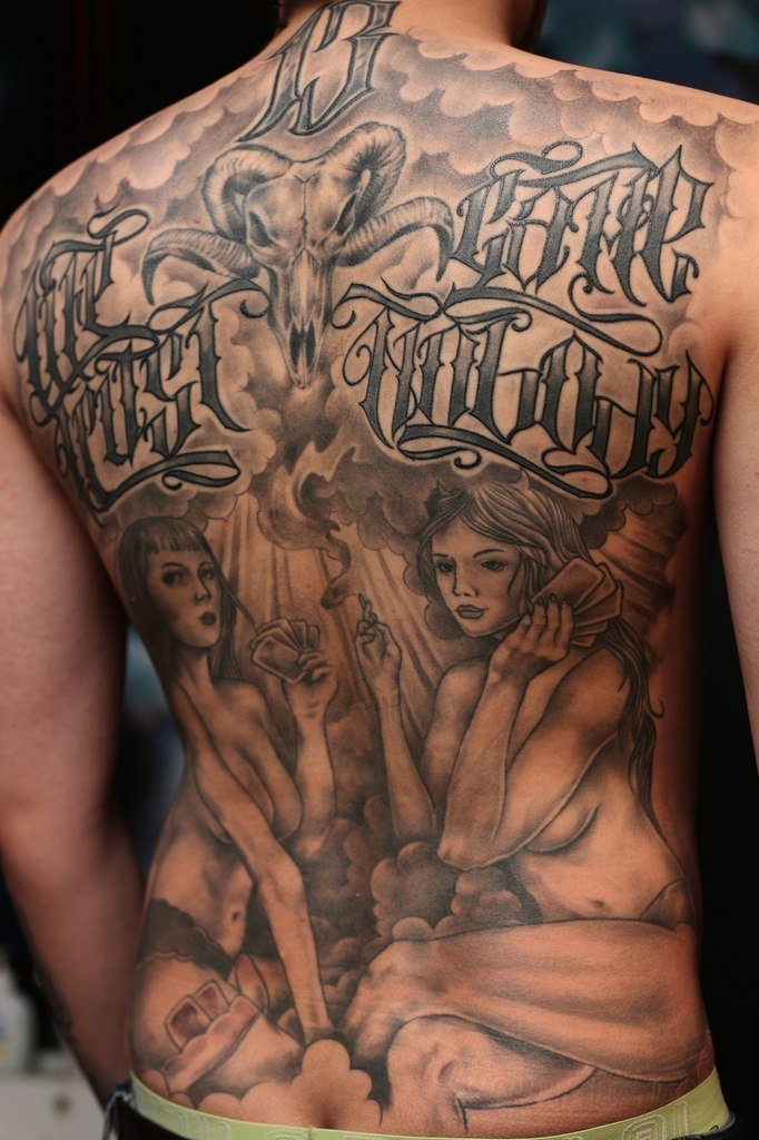 Большая тату на спине с короной по class=»aligncenter» width=»960″ height=»916″[/img] Чикано реализм, портрет