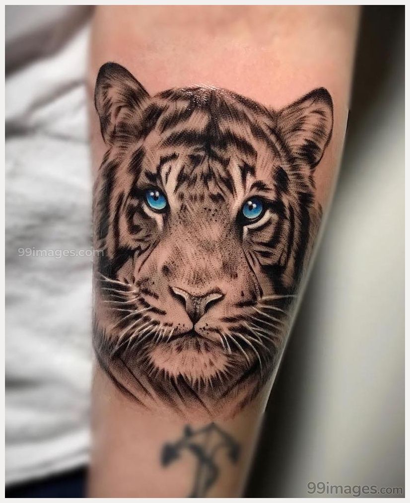 красочная татуировка лица тигра на руке делает руку более эффектной и привлекательной. Кроме того, это помогает быть смелым. С разными цветами чернил татуировка тигра выглядит красивее.
