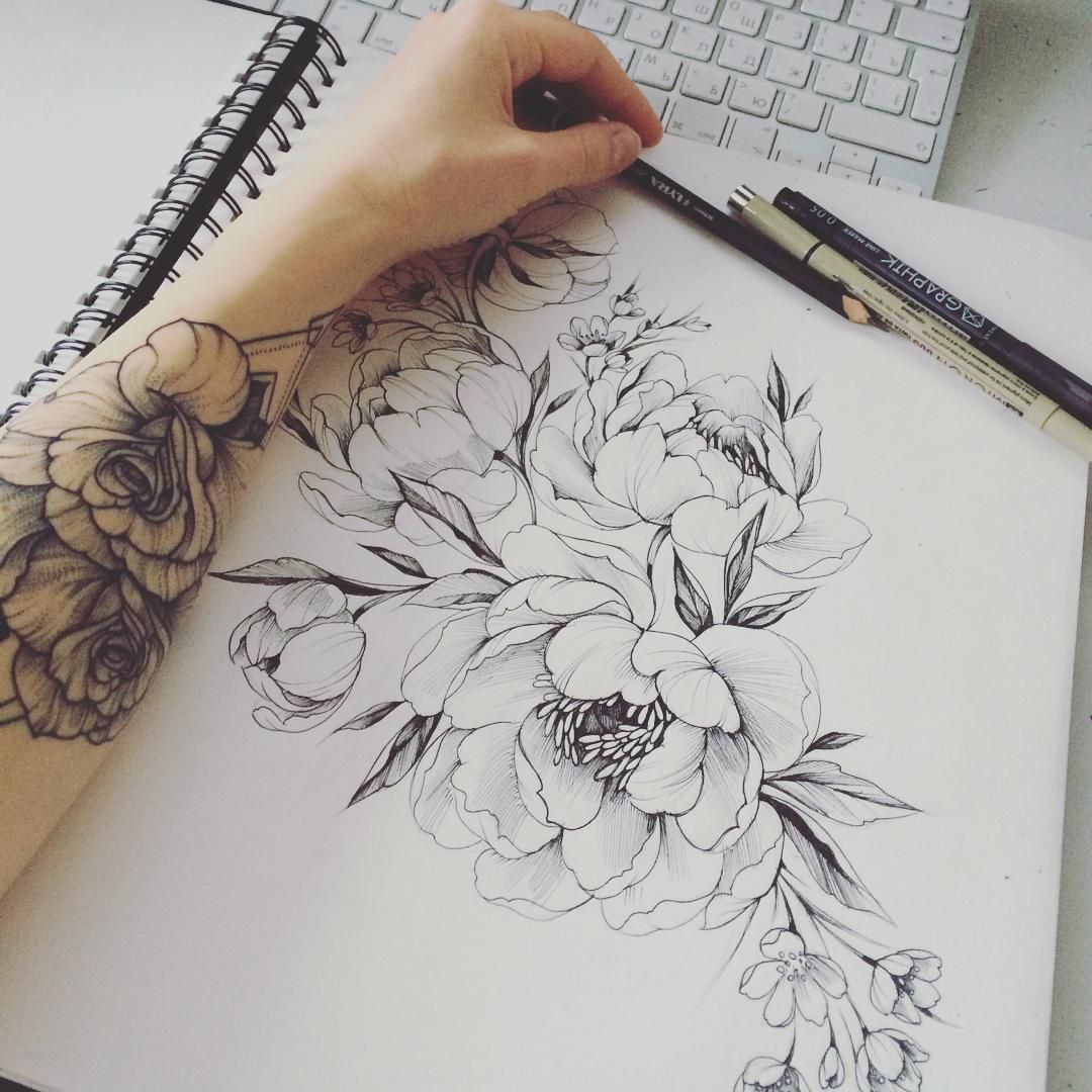 50+ Дизайнов Эскизы Тату Цветов Разных Стилей