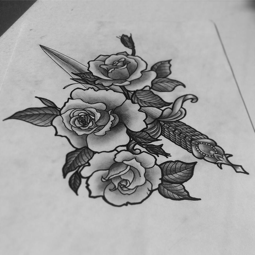 Источник25. Эскиз тату цветка розы со стрелой для девушек на ногу.