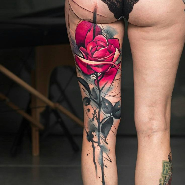 Эта татуировка является не только примером красивого и точного размещения татуировки на бедре, но и может похвастаться великолепным дизайном.