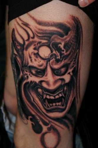 Все большую популярность набирает японская культура. Многие интересуются мифологией этой волшебной страны, ее фольклором. Нарастающий интерес к этой культуре привнес новшества и в тату. Японские демоны «Они» — страшные, человекоподобные существа с цветной кожей, их очень сложно убить, и питаются они человеческим мясом. Также существует мнение, что в страшных рогатых демонов превращаются сварливые и слишком ревнивые жены.