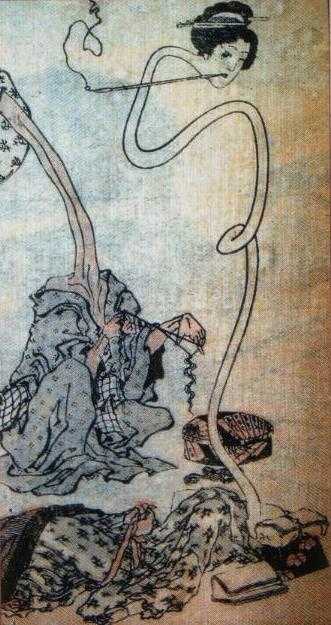 – Рокурокуби изображается в виде прелестной женщины, которая выходит замуж и только ночью показывает свою истинную темную сущность. Ее жертвами становятся богохульники.