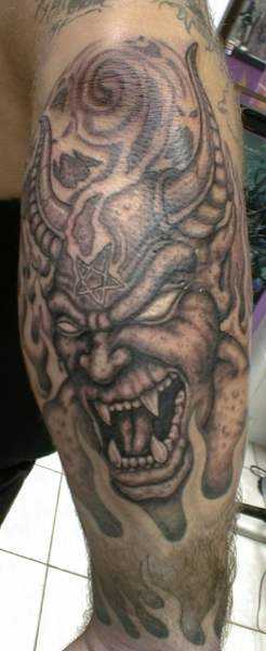 Общепринятое значение тату демон – это человеческая грешность, слабость к соблазнам. Данный символ говорит о том, что человек либо признает в себе порок либо хочет избавиться от недостатка и таким образом оставляет себе напоминание о нем. Например злой дух Вельзевул, помощник самого дьявола – олицетворение чревоугодия и люди верят, что его изображение поможет похудеть? Кто пробовал, напишите результаты такой диеты нам в комментарии, пожалуйста. Мы знаем, что индейцы набивали рисунки тех, кого они боялись, в надежде таким образом победить врага, но им это не помогло.