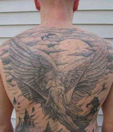 У мужчин изображение ангела символизирует смирение перед выпавшими трудностями, защищает от сил зла. Популярными являются эскизы тату со сражением между ангелом и демоном. При выборе места нанесения необходимо учитывать анатомические особенности человека, чтобы добиться нужного эффекта.