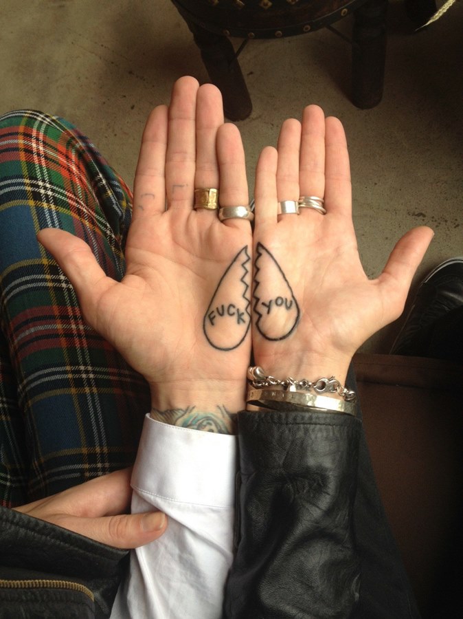 Но, как уже говорилось ранее, влюбленные – это отдельная часть людей, которые склонны придавать большое значения знакам и парные татуировки тому доказательство. Ведь в этот период полет мыслей и чувств набирает невиданную широту и часто хочется сотворить что-нибудь этакое, особенное, индивидуальное.