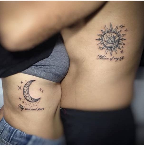 Лучшим вариантом будет вместе со своей любимой проработать все возможные эскизы, отобрав наиболее подходящие по смыслу и значению парные тату с картинками, а потом уже отправляться в салон к опытному мастеру, который внесет небольшие коррективы по фото тату или его эскизу для придания четкости и структурированности.