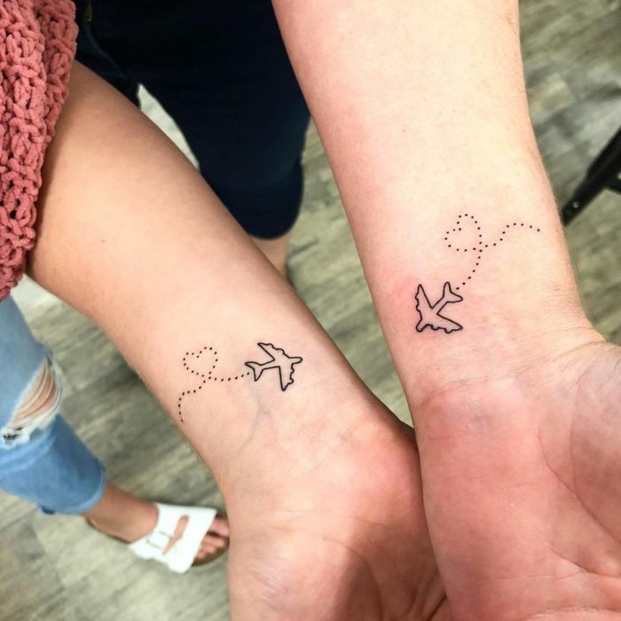 Третьей категорией парных тату стали наколки родственников. Чаще всего эскизы просматривают родители с детьми. Когда последние подрастают, не утеряв душевной связи с матерьми и отцами, начинают желать отблагодарит близких за поддержку, тепло.