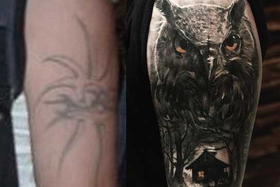 Тату для перекрытия старой на руке, на груди, спине, бедре имеет длительный подготовительный процесс. Необходимо просмотреть каталог работ тату перекрытие старых фото, чтобы вдохновиться новыми идеями и придумать что-то оригинальное и необычное.