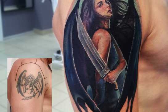 Не обязательно избавляться от татуировки, прибегая к долгому лазерному удалению нательного рисунка. Гораздо быстрее можно исправить ситуацию, если перекрыть некрасивое/неудачное/старое изображение новой татуировкой.