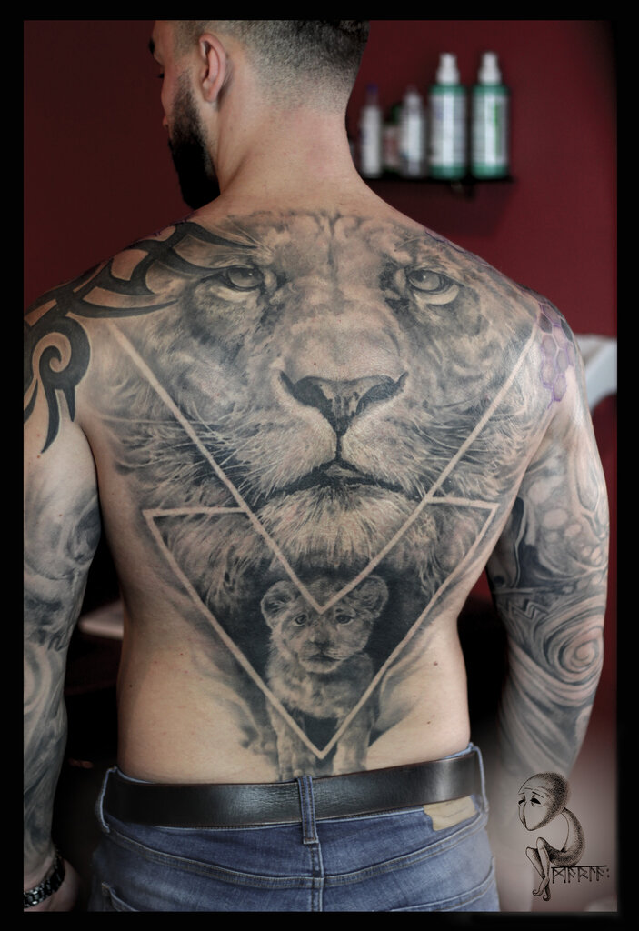 Π’Π°ΠΊΠΆΠ΅ ΠΌΡΠΆΡΠΈΠ½Ρ Π½Π°Π½ΠΎΡΡΡ Π½Π° ΡΠ΅Π»ΠΎ ΠΈΠ·ΠΎΠ±ΡΠ°ΠΆΠ΅Π½ΠΈΡ ΠΏΠ΅ΡΡΠΎΠ½Π°Π»ΡΠ½ΡΡ ΡΠΎΡΠ΅ΠΌΠ½ΡΡ ΠΆΠΈΠ²ΠΎΡΠ½ΡΡ . ΠΡΠΎ ΠΌΠΎΠΆΠ΅Ρ Π±ΡΡΡ Π²ΠΎΠ»ΠΊ, ΠΏΠ°ΡΠΊ, ΠΌΠ΅Π΄Π²Π΅Π΄Ρ ΠΈΠ»ΠΈ ΡΠΊΠ·ΠΎΡΠΈΡΠ΅ΡΠΊΠΈΠ΅ Π»Π΅Π², ΡΠΈΠ³Ρ, Π΄ΡΠ°ΠΊΠΎΠ½. ΠΡΠ΅ Π·Π²Π΅ΡΠΈ Π°ΡΡΠΎΡΠΈΠΈΡΡΡΡΡΡ Ρ ΡΠΈΠ»ΠΎΠΉ, Π°Π³ΡΠ΅ΡΡΠΈΠ΅ΠΉ, ΡΠΏΠΎΡΠΎΠ±Π½ΠΎΠΉ Π·Π°ΡΠΈΡΠΈΡΡ Π²Π»Π°Π΄Π΅Π»ΡΡΠ°.