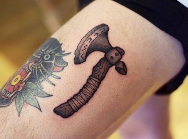 Топор, который используется в бою, способен очистить вас от предательства и врагов. Это значит, что такое тату будет способно наделить своего обладателя особой защитой. Изображая 2 топора, можно сказать о бесстрашии. Удачным местом расположения такого тату станет правое плечо.