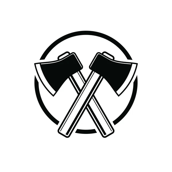 Иллюстрация с двумя скрещенными топорами и деревянным элементом на белом фоне.