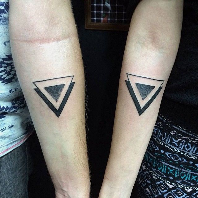 В наше время татуировки делаются еще в качестве увековечивания своей любви к другому человеку. Таким образом, делаются также и парные эскизы треугольников для влюбленной пары, которая уверена в своих чувствах.