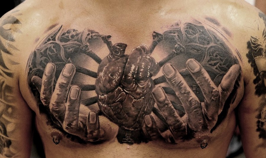 Тату на груди парня – камень и черепТатушка на груди парня – камень