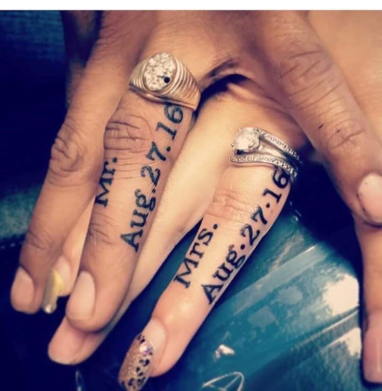 Для парных тату выбираются подходящие символы, которые представляют отношения между двумя людьми, состоящими в браке или иных связях. Таковыми чаще всего выступают кольца, имена или инициалы, значимые даты, кресты, сердечки или другие маленькие изображения.