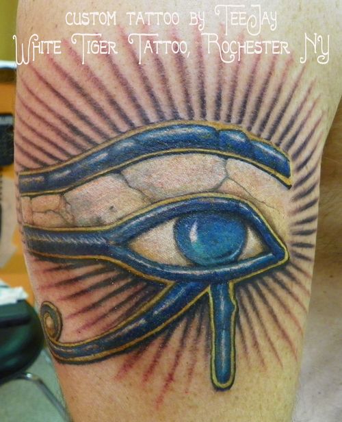 Гор был одним из древнейших богов египетского пантеона. Для египтян солнце было всевидящим оком. Это было отверстие в небе, через которое излучался небесный свет и освещал мир. Таким образом, татуировка была описана как Всевидящее око.