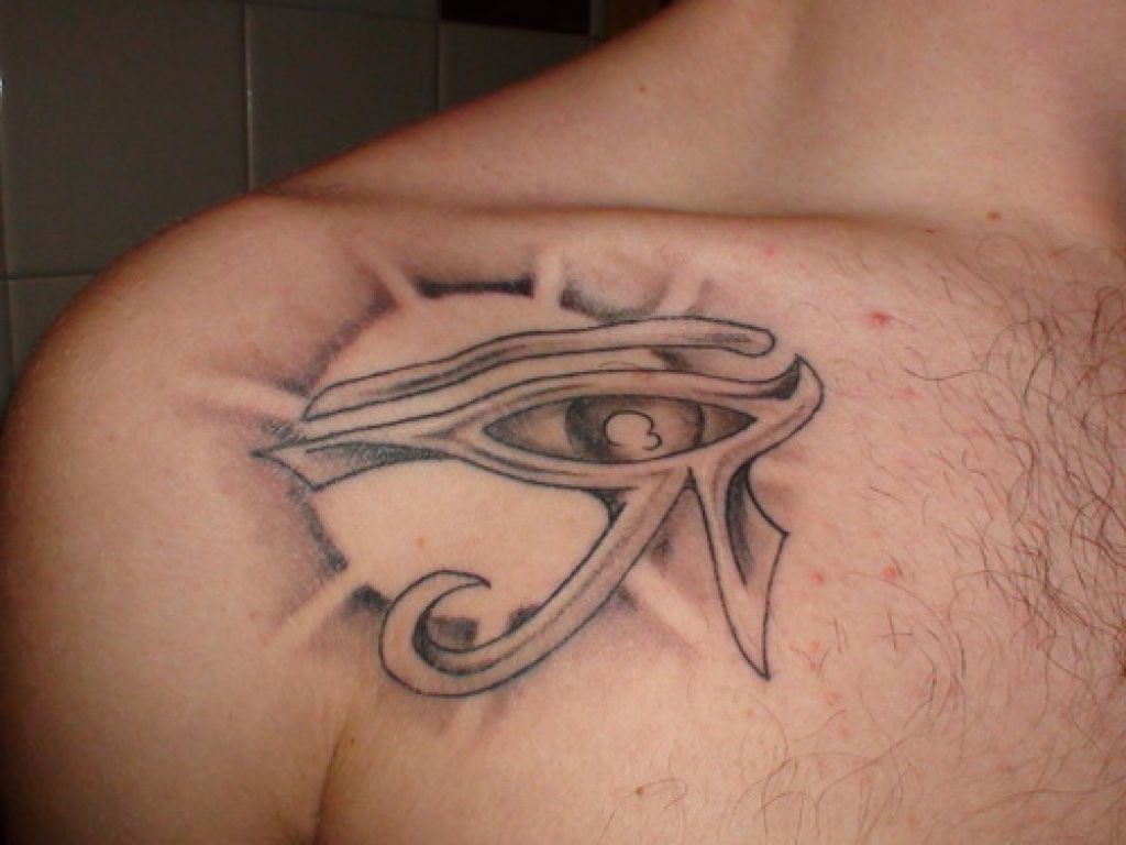 У сильного пола набитый глаз на теле означает, что носящий поклоняется Богу Гора или Ра. Такой талисман несет в себе силу, волю к победе, несокрушимость. Око становится оберегающим символом, который олицетворяет радость, свет, исцеление от недугов и оберег против демонических сил.