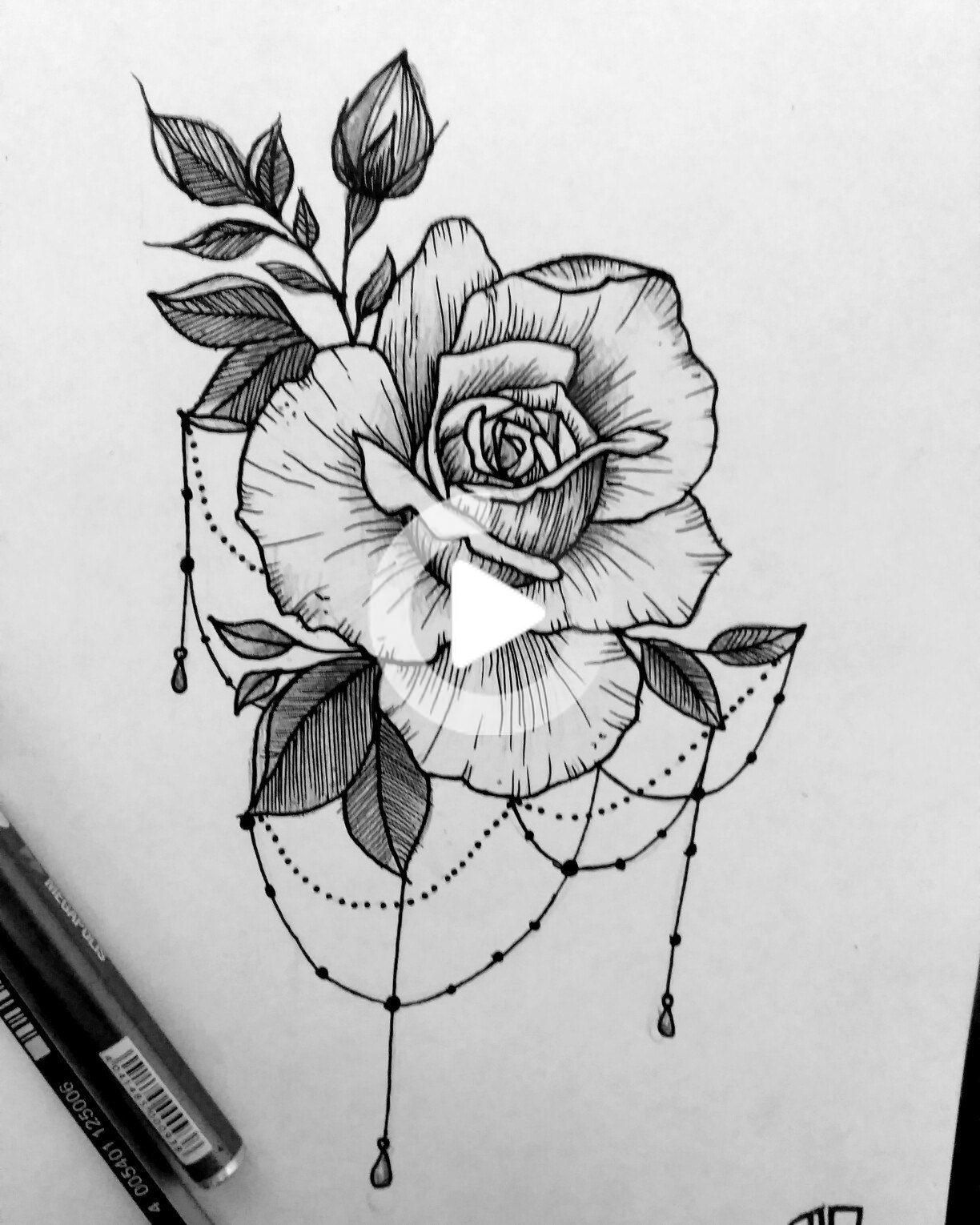 Если вы ищете что-то более объемное, вы также можете выбрать тату с затененными или черными розами на нашей платформе контента, например, эта детальная роза, идеально подходящая для руки, предплечье, бедро или плечо: