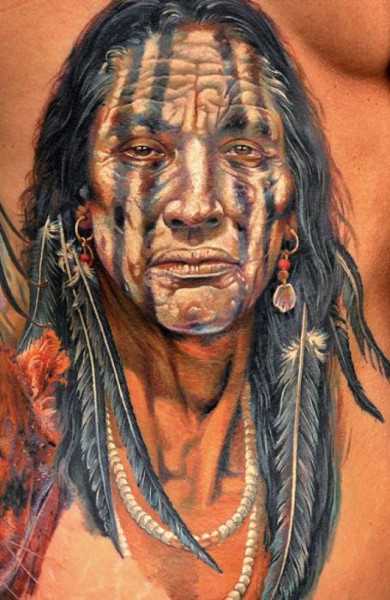 В тату-сфере очень популярными являются изображения индейцев. Индейцы, как всем известно – коренные жители Америки, которые по сей день чтят традиции своего народа. Самобытная культура коренных американцев отличается особыми элементами в стиле их одежды, а так же проведением особых обрядов. Индейские племена еще с давних веков не отступают от своих традиций, испокон веков они приносят дань своим предкам и почитают священных духов природы. Так же индейцы чтят и представителей животной природы, они верят что умершие предки принимают образы животных. Представители племени часто носят прозвища с названием определенного животного, либо же в качестве атрибута используют часть животного либо птицы, которые обозначают определенные качества характера человека.