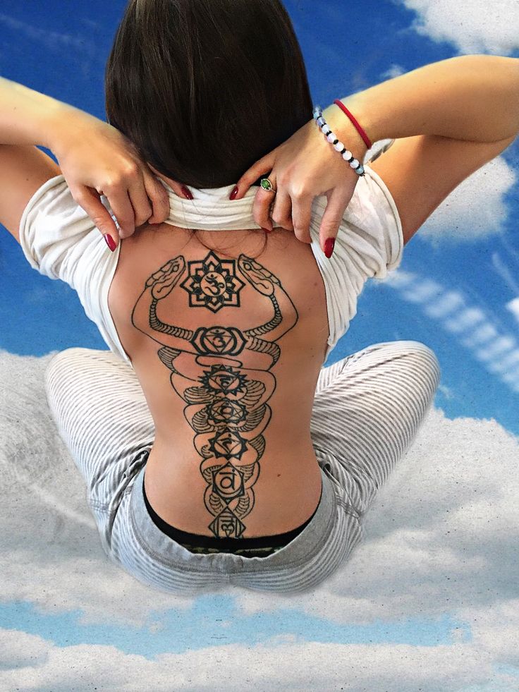 Сами символы чакры предназначены для того, чтобы открыть разум для исцеления при сосредоточении на каждом из них. Считается, что они являются энергетически мощными символами. Поэтому считается, что их татуировка энергетически помогает поддерживать сбалансированный поток энергии.