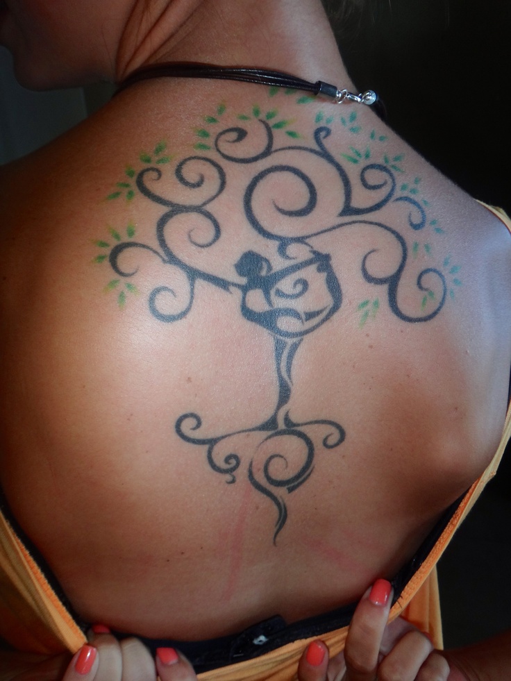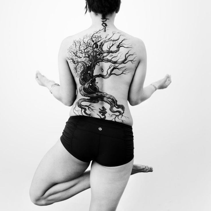 На первый взгляд кажется, что эта татуировка изображает танцовщицу. Но внимательно присмотритесь: девочка ступает по земле по образцу инь-ян. Это говорит о том, что она получает энергию от земли под ней и неба над ней. И в этом волшебная сила йоги — соединять тело с окружающим миром.