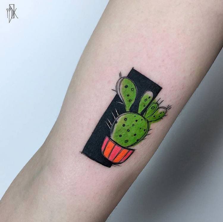 Татуировка с изображением кактуса означает стойкость, выносливость, оригинальность, защиту, скрытность, ранимость, оберег, долгую жизнь, скрытый потенциал, скромность, воинственность, дерзость, чувствительность, неординарность, красоту, неприхотливость, яркость, артистичность, отстраненность, долголетие.