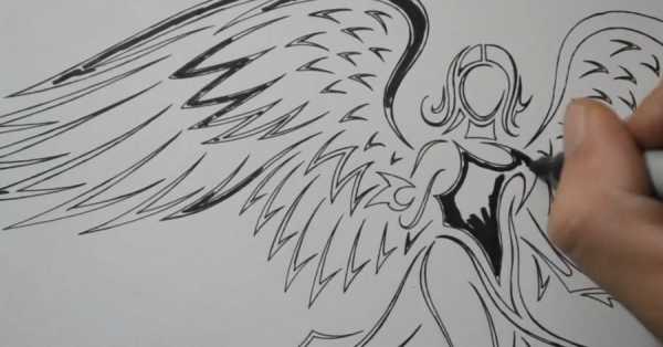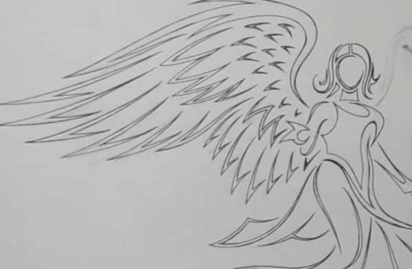 Привет друзья! Начните рисовать татуировку ангела с простого наброска рисунка.