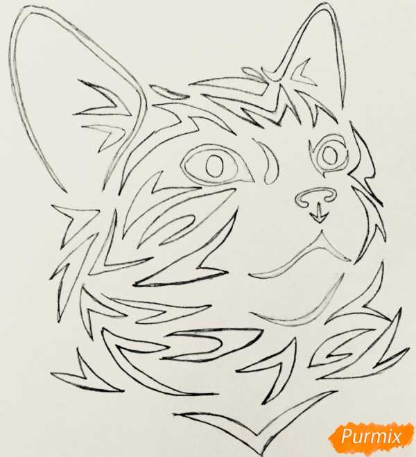 Рисуем узоры на мордочке, на шейке и возле глазок, как на рисунке.