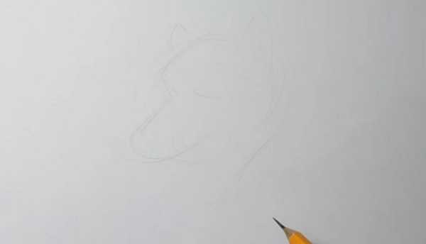 Следует начать с зарисовки основных линий формы головы, так как представлено на рисунке. Только затем нарисовать глаз и провести тонкую линию за пределы окружности.