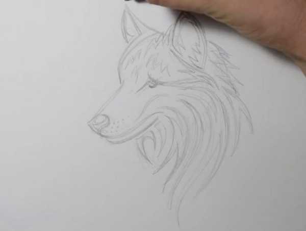 Привет! Сегодня ты узнаешь, как шаг за шагом нарисовать тату волка. Начнем с того что наметим простым карандашом силуэт морды волка и его торчащие уши.