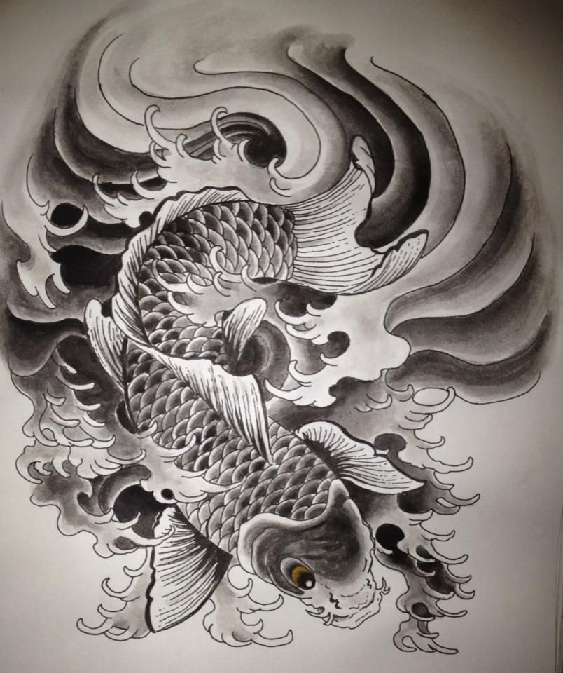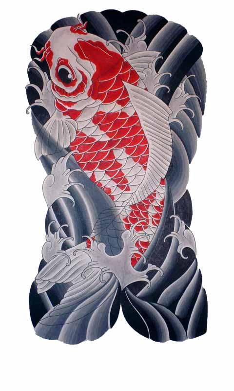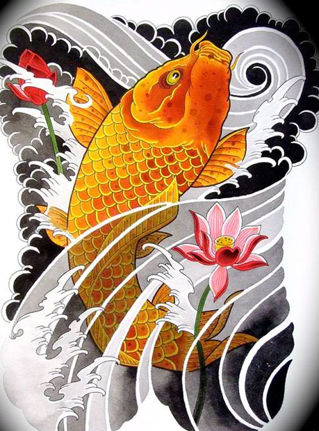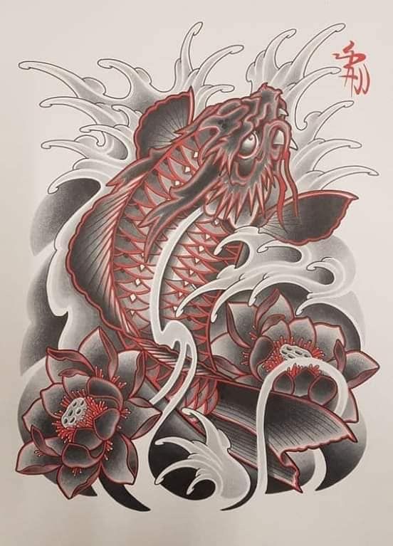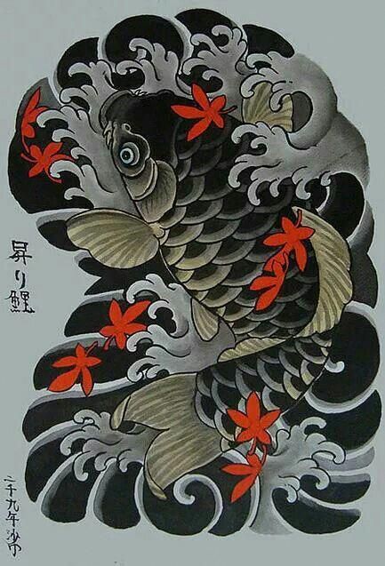 Выполняется изображение карпа на теле, как правило, в японском или китайском стиле, в окружении воды, иногда украшенным цветами вишни, лотоса, а иногда вместе с драконом или вторым карпом. Встречается эскиз татуировки карпа с головой дракона.
