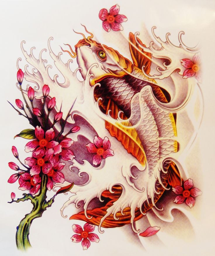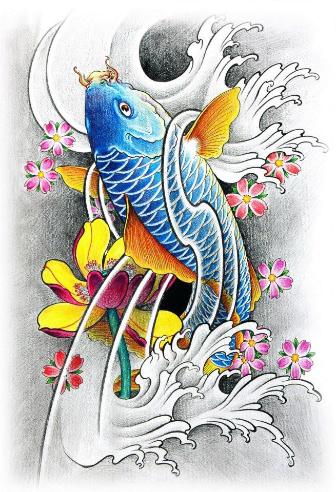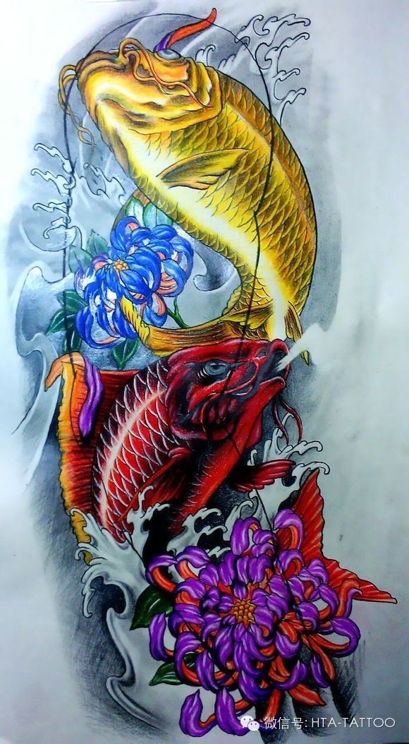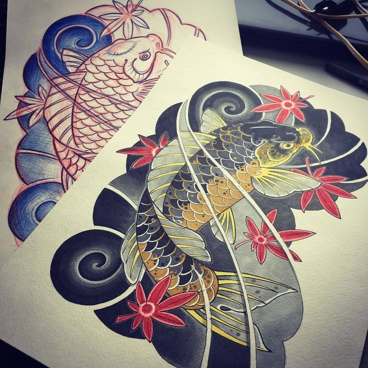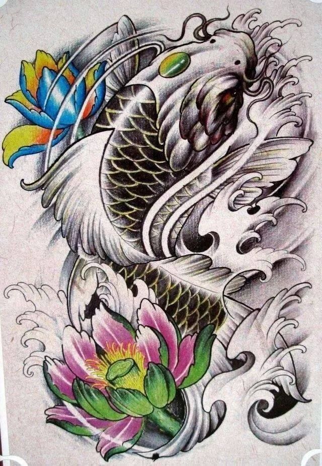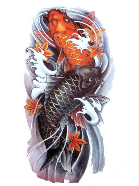 Татуировки рыбы Кои бывают разных дизайнов и цветов, которые имеют разные значения, связанные с ними.