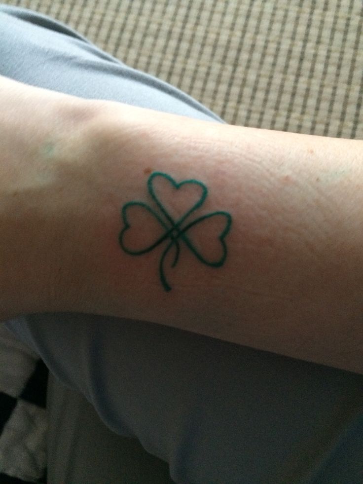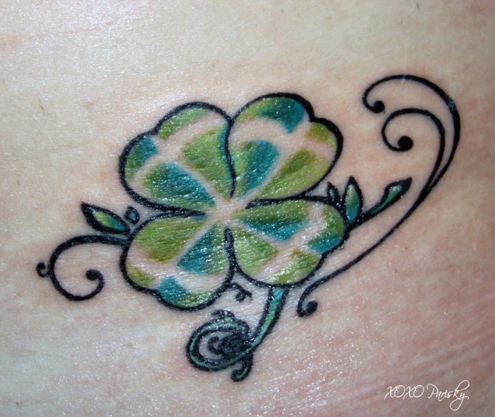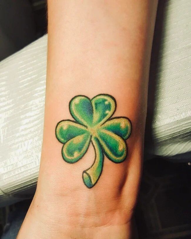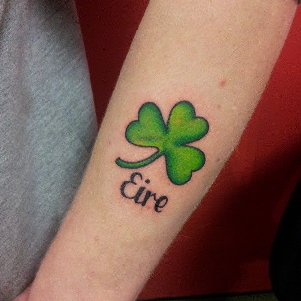 Многие люди наносят свое имя на татуировку с четырехлистным клевером, чтобы показать, что они хотят, чтобы удача чаще сопутствовала им . Есть и другие татуировки с надписями с четырехлистным клевером, такие как цитата «Удача ирландцев» или слово «Счастливчик».