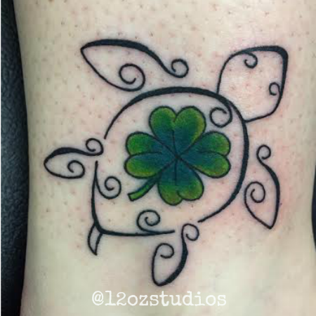 Кельтское тату с четырьмя листками клевера. Это, предположительно, наиболее распространенный тип дизайна. Татуировка может содержать некоторые особенности, такие как кельтское древо жизни или кельтский крест, которые окружают растение. По сути, тату имеет выраженную кельтскую тематику и выполняется в традиционном зеленом цвете.