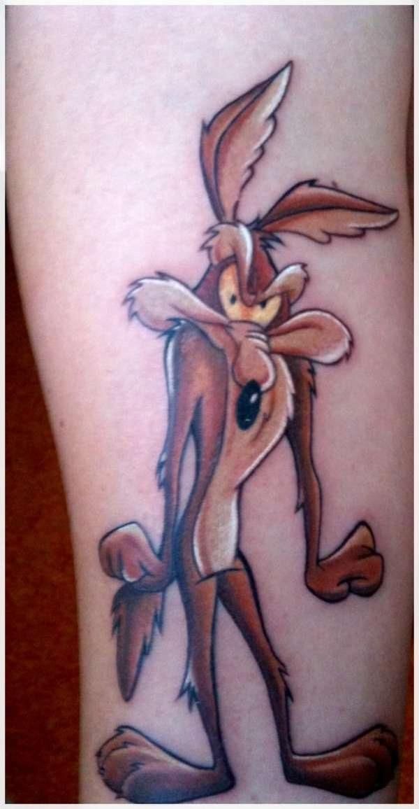 Самым популярным койотом, конечно же, является Уайл Э. Койот, также известный, как «The Coyote». Он и “Road Runner” это дуэт персонажей из мультфильмов Looney Tunes и Merrie Melodies. В мультфильмах Койот неоднократно пытается поймать и впоследствии съесть “Road Runner”, быстроходную наземную птицу, но его попытки никогда не бывает успешными. Его стиль жизни «никогда не сдаваться» относится к интеллекту, силе и хитрости животного. Койот Wile E., был признан одним из 60 самых опасных злодеев на TV Guide за все время, но для большинства людей он представляет собой хитрость и легкомыслие. Тату Койот в мультяшном стиле воспроизводит вашу игривую индивидуальность, саркастичный характер, но также идентифицирует вас, как большого ” хитрована“.