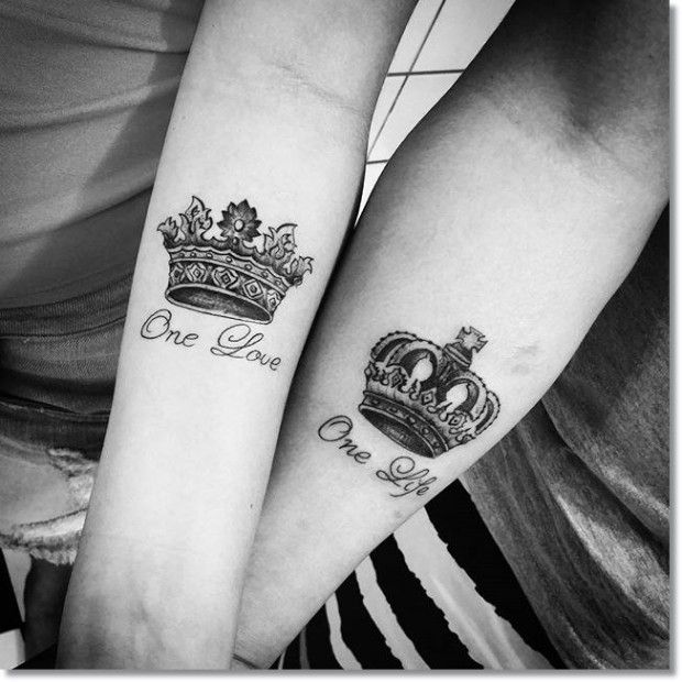 Эта татуировка для пар широко используется, так как это отличная идея показать, что они гордятся тем, что их выбрали друг друга. А короны каждый день будут на вашей коже напоминанием о том, что он ваш принц, а вы королева. Они также представляют будущие достижения и цели с точки зрения экономическое и духовное процветание чего они хотят достичь вместе.