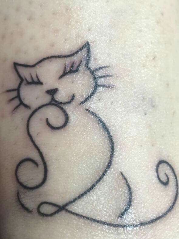 Очень простая, но милая татуировка кошки.