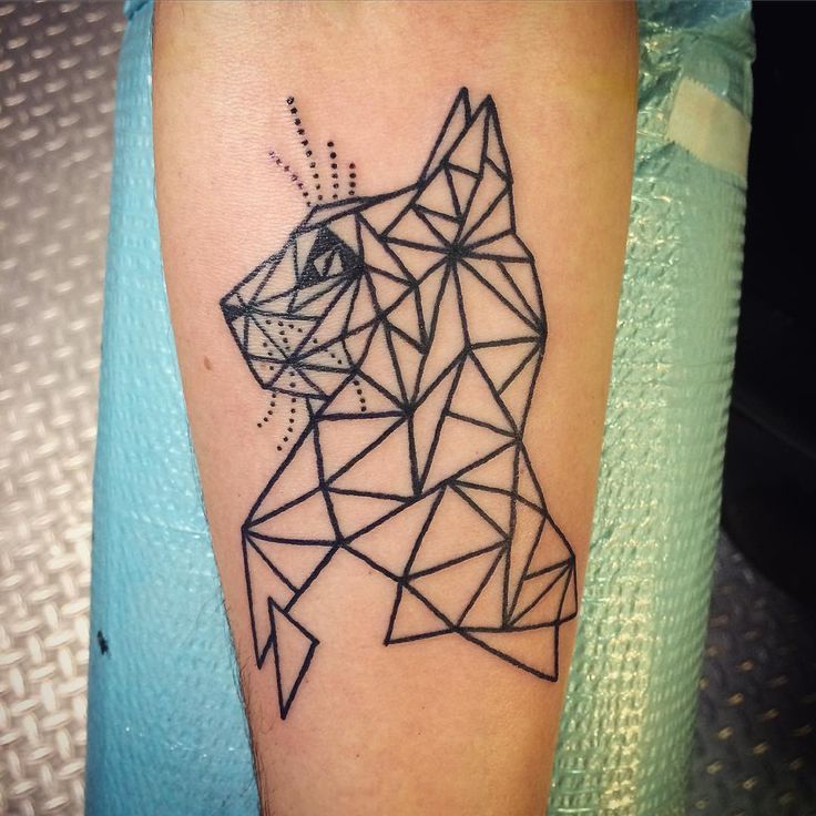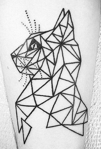 33. Существует множество геометрических рисунков татуировок кошек, но мне больше всего нравится тот, в котором используются различные геометрические формы от круга и треугольников до квадратов и многоугольников.