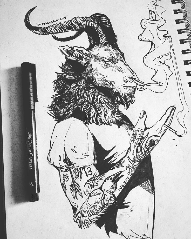Поскольку многим людям это животное знакомо как исключительно домашнее и, казалось бы, какое скрытое значение у него может быть. Оказывается татуировки с козлом хоть и не настолько сильно распространены как множество других, там не менее этот символ обладает довольно большим количеством интересных и необычных значений. Стоит отметить, что в большинстве случаев подобная иллюстрация носит характер сатанистских обрядов и убеждений, которые связаны с дьяволом и его приспешниками. В большинстве своих обозначений козел носит отрицательный символ, так как именно голова этого животного является символом сатаны. И перевернутая пентаграмма связана с этим образом. Как правило, именно в сочетании с этим животным выполняется множество татуировок, связанных с данной тематикой. Также помимо этого знак козла может принимать обозначение хорошего чувства юмора, который присущ человеку. Чаще всего эту иллюстрацию решаются наносить на свое тело мужчины, чтобы таким образом подтвердить всем известную и часто применяемую фразу, которая связана с этим животным.