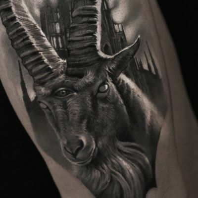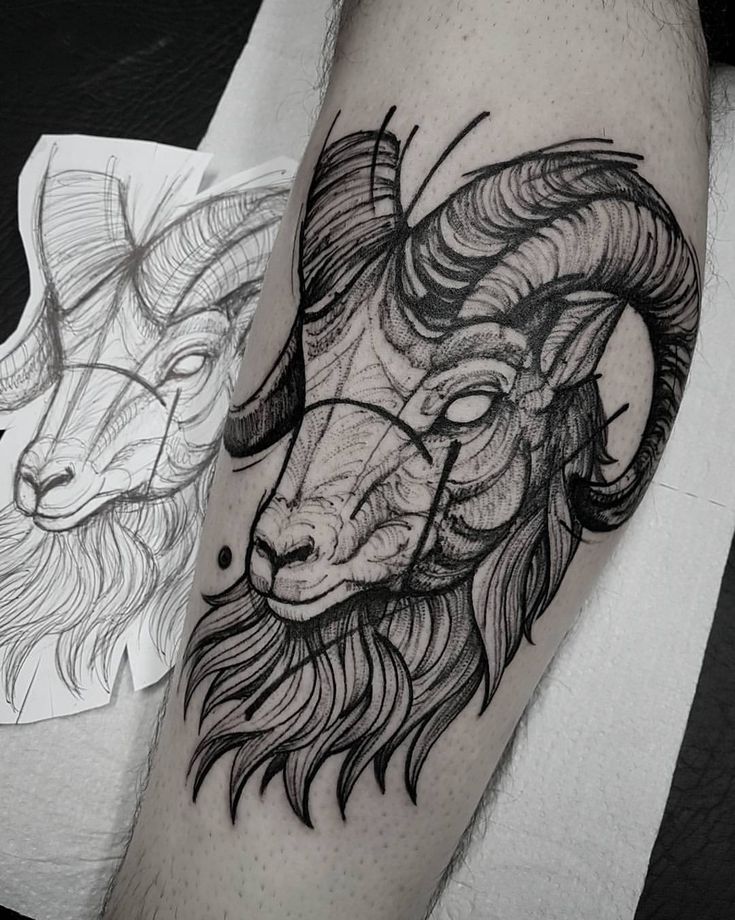 Татуировка с изображением козла выглядит колоритно и устрашающе, несет в себе определенный смысл. Рисунок интересен как в цветном, так и черно-белом исполнении.