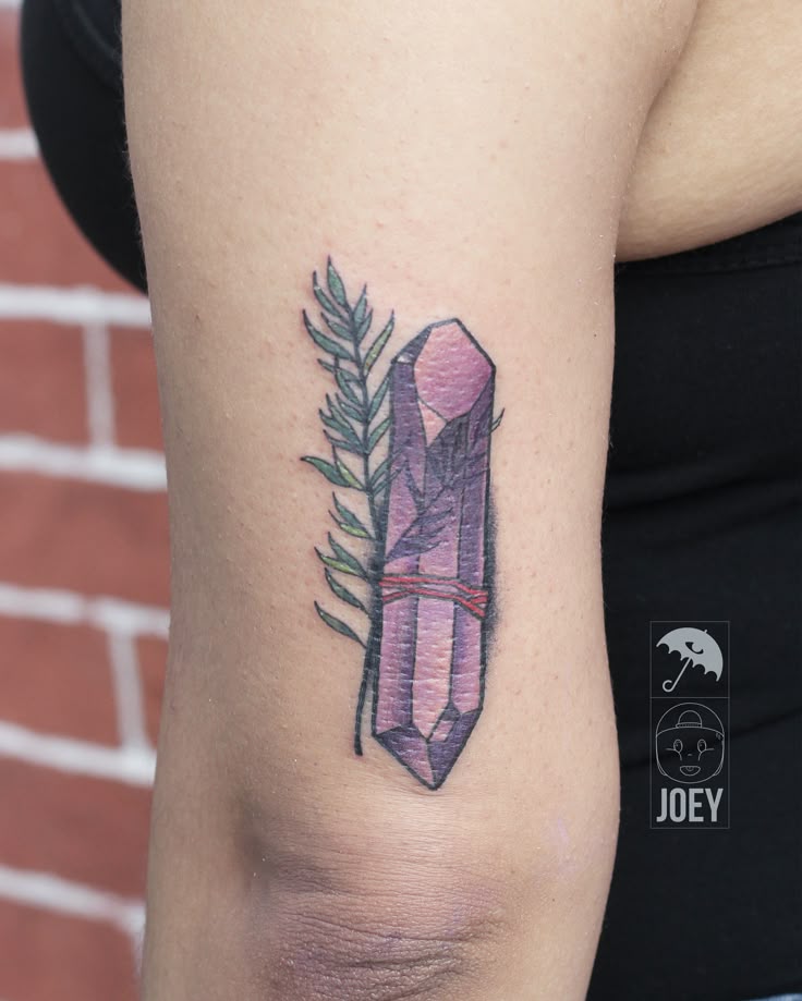 @haleylyntattoos Маленькие татуировки с кристаллами обожают люди всех полов и идеально подходят для любого места! Розовые кристаллы источают теплую энергию любви и прощения, а фиолетовый кристалл находится на более высоком духовном уровне, чем другие.