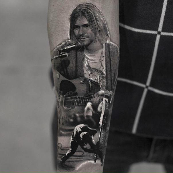 Известно также, что солист группы Limp Bizkit Фред Дёрст носит тату с изображением Кобейна.