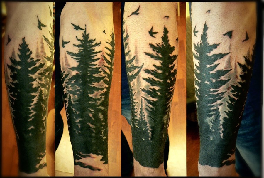 А ниже представлены фото татуировок с изображением леса от разных мастеров.