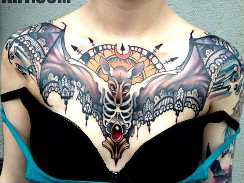 Тату летучих мышей на груди — 105 лучших фото татуировок 2023 года