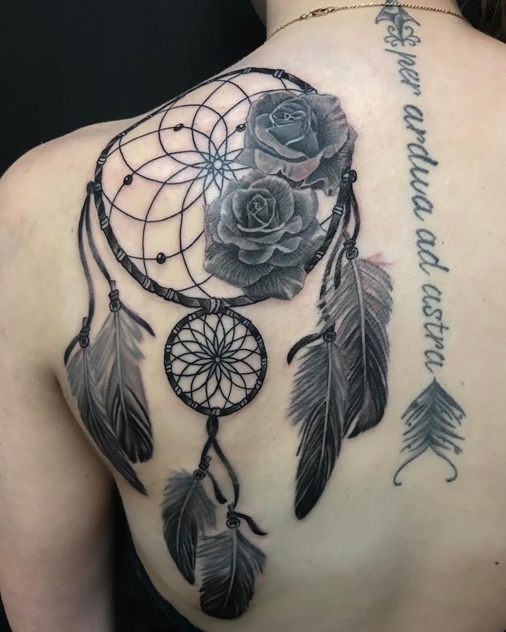Чаще всего к ловцам снов привязывают перья. Перо, как полагали индейцы, помогает установить связь с божественными силами. Присутствие перьев на тату ловец снов добавляет значение связи с высшими силами, их покровительство человеку.
